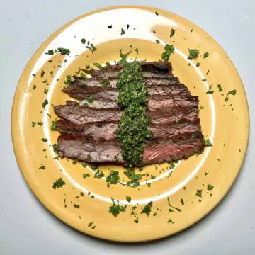 IMPORTANT: As I mentioned at the top of this post, I created separate recipes for the beef & marinade and the chimichurri sauce. I did that for calorie-counters like me : ). So make sure to print or save both recipes!