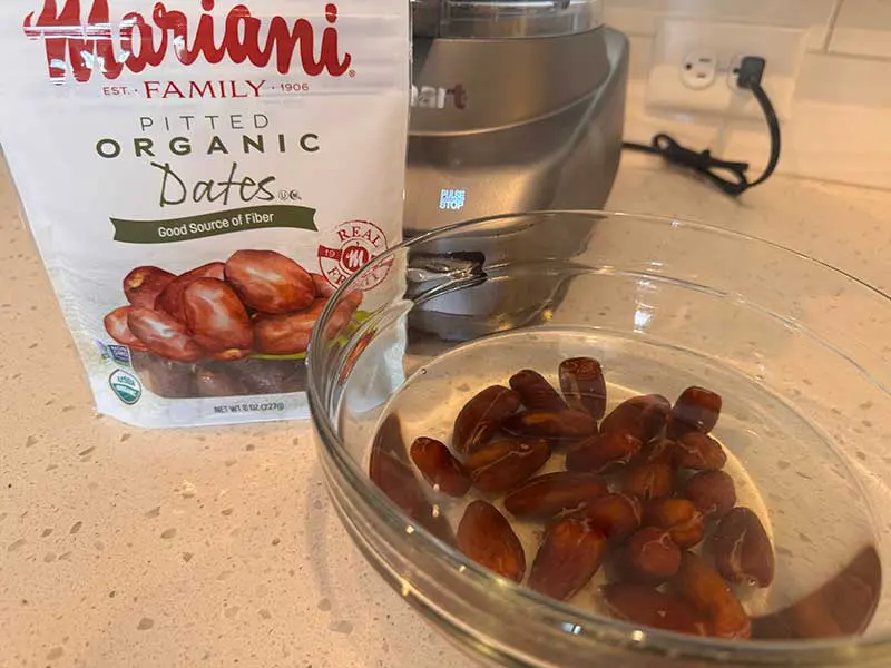 - Drain the dates, keeping the soaking water. Add dates to blender or food processor.