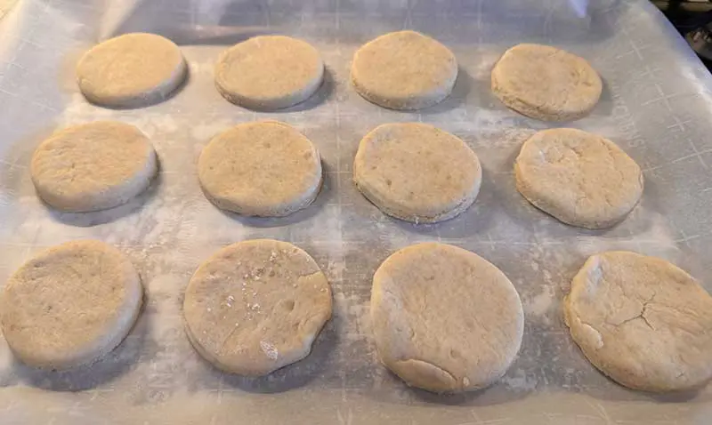 - On a floured surface, roll out dough to about ½ inch to ¾ inch thickness. Cut out your scone circles. I use a plastic cup to cut out shapes and aim for 10 to 12 scones per batch (depends on dough thickness)